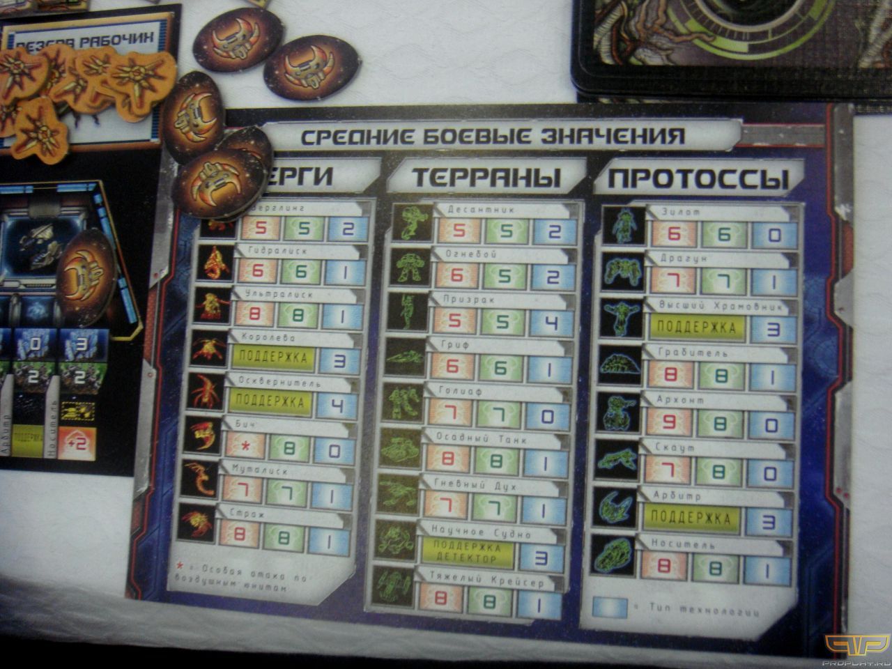 Средние боевые значения для расс в настольном StarCraft II
